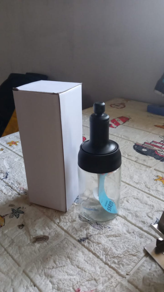 5522 Heat-Resistant Condiment Container Seasoning Box Glass Condiment Canisters Pots Bottle with Serving Spoons for Salt Spice Honey Sugar BBQ Restaurant Jar, Oil Bottle Honey Jar Dispenser, Airtight Cap Transparent (1 Pc)